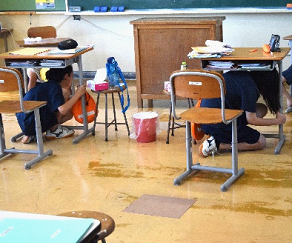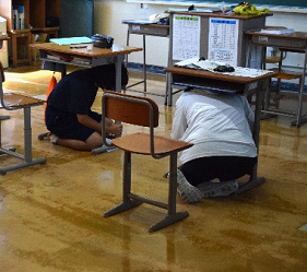 シェイクアウト訓練を、9月1日(月)の「防災の日」に行いました。近い将来必ず来るという南海トラフ地震に備えて、揺れが収まるまでの対策を瞬時に判断して行動する訓練です。自分の身は自分で守る気持ちをしっかり持って全員が取り組んでいました。