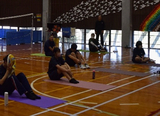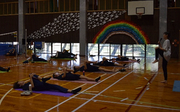 9月30日(火)の5,6限に体育館でヨガ体験学習を行いました。はじめはヨガと聞き、体が柔軟でないと決められたポーズができないのではないかと不安な気持ちもあったとは思いますが、講師の井上吏絵さんの分かりやすい説明と話術で全員がヨガ体験にスムーズに入っていくことができました。生徒の感想には「自分にできるかな?と思ったけど、案外やってみたら簡単で楽しかった。」「すごく楽しかったし、ヨガをした後は体がリラックスできたので良かった。」などがあり、初めての体験でヨガの魅力を実感したようでした。
